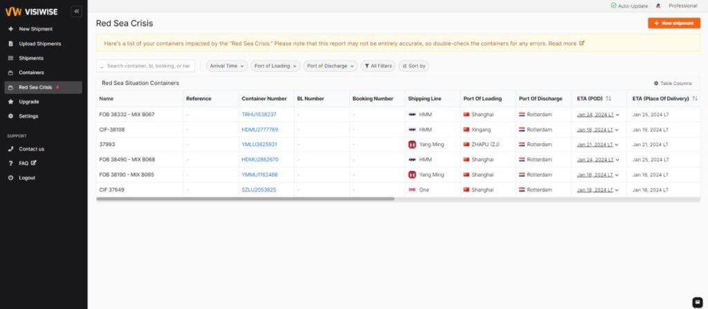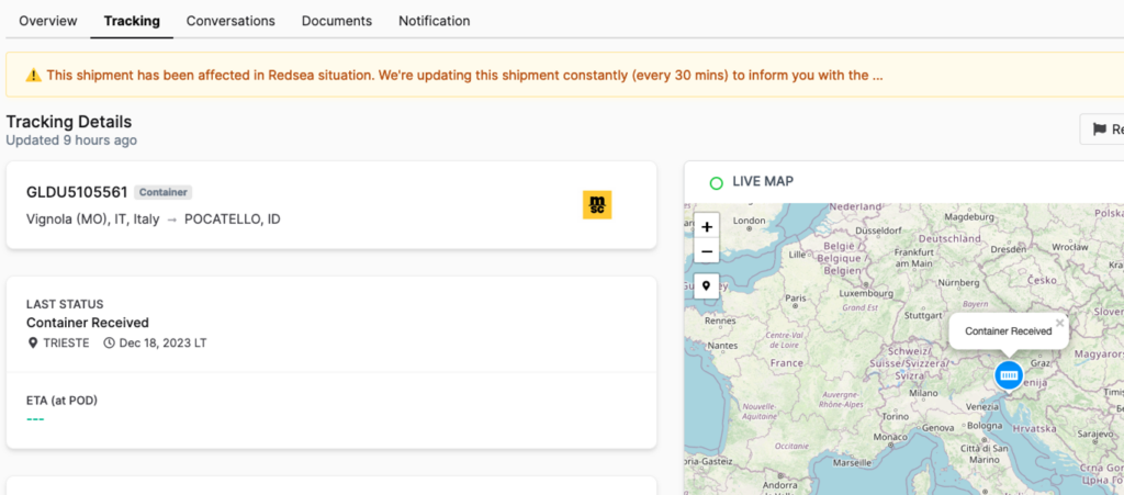 - Real-Time Updates on Affected Shipments: Shipment visibility platforms provide businesses with real-time updates on the status of their shipments amid the Red Sea crisis. This capability is invaluable in situations where the safety and timeliness of shipments are uncertain, allowing businesses to stay informed and take immediate action.